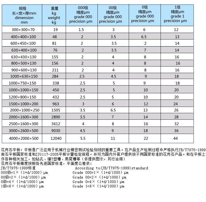★花崗石平板精度參照各先進國家標準,平面度公差依:
